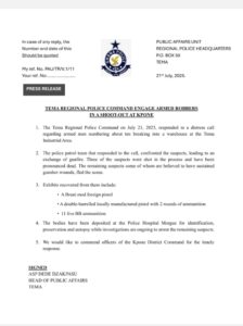 The police commended officers of the Kpone District Command for their swift and coordinated response.